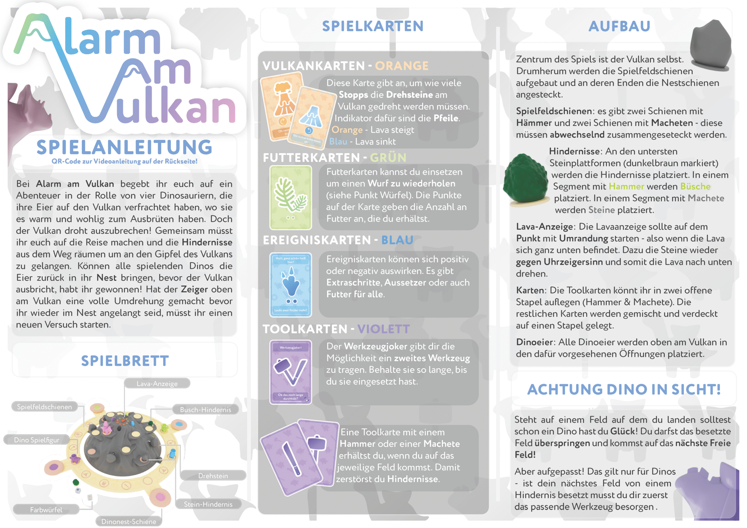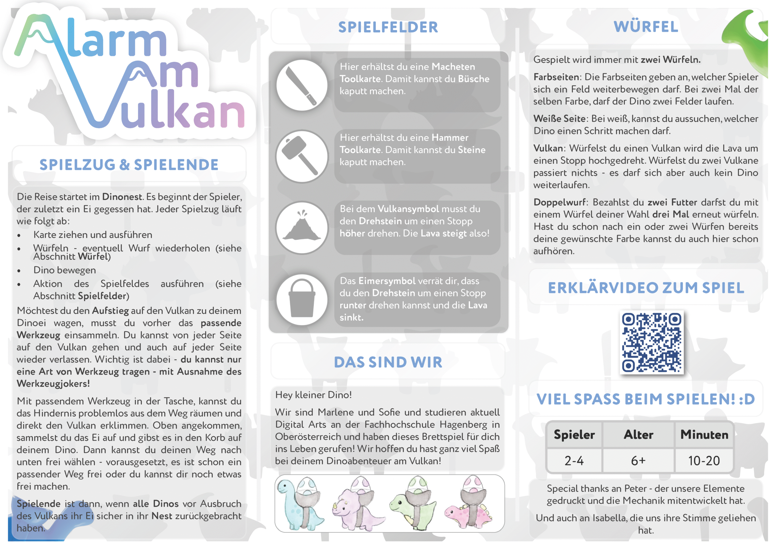 Alarm am Vulkan war ein Semesterprojekt, welches mir und meiner Kollegin Marlene besonders am Herzen gelegen ist. Wir haben ein Kinderbrettspiel kreiert, bei dem vor allem Teamarbeit und Kommunikation im Vordergrund stehen.